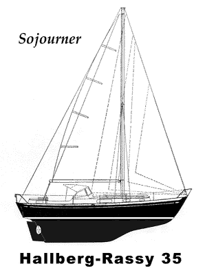 Sojourner is very different now to the boat she was in 1974. During the last two and a half years we have owned her, she has been completely re-built from stem to stern. All hull fittings below the water-line have been replaced, including the through hulls (bronze sea cocks that pass through the hull), rudder stock, propeller shaft, cutlass bearing, depth transducers and speed & temp sensors. Above deck we continued the extensive re-build and replaced all the rigging with new 9/32 stainless 1 X 19 wire. All turnbuckles were replaced, and Noreseman fittings were used aloft and at the deck. While we had the mast down we inspected all the fittings and spray-painted it with Awlgrip to match the deck color (it was previously gold-anodized). At the masthead we installed a weather station, tricolor lamp and ion-dissipater (to reduce the chance of lightning strike). A Raytheon Pathfinder SL70 radar was added along with new steaming lights and spreader-mounted deck lights.