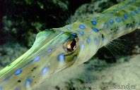 A rare Coronet fish glides gently in pursuit of prey in the Caribbean night.